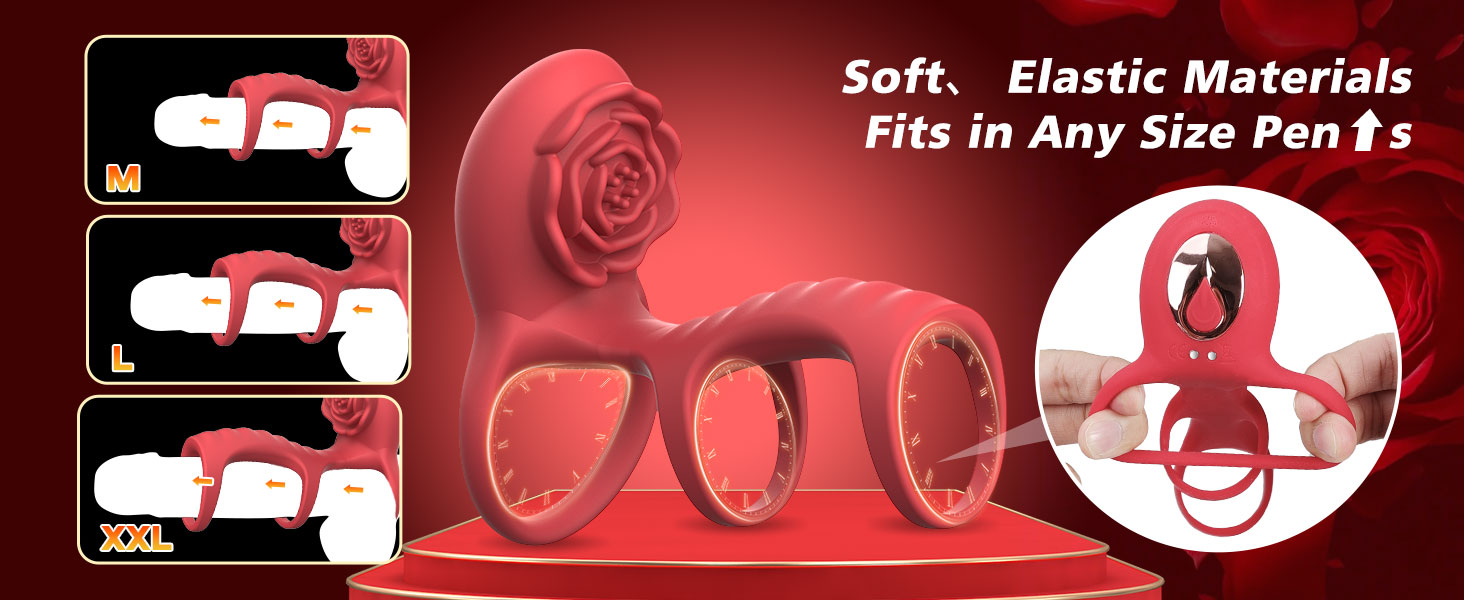 💕Experience a whole new sexual experience - The 3-in-1 Rose Series Triple Ring Cock Ring is designed for couples. The triple ring allows him to take his intercourse to the next level, while the sleeve increases penis girth and the vibrations provide deep vaginal stimulation. The rosette gently caresses her clitoris. The moment you put on the RIDMII, it ignites all your desires, and you can't wait to bring her to orgasm.