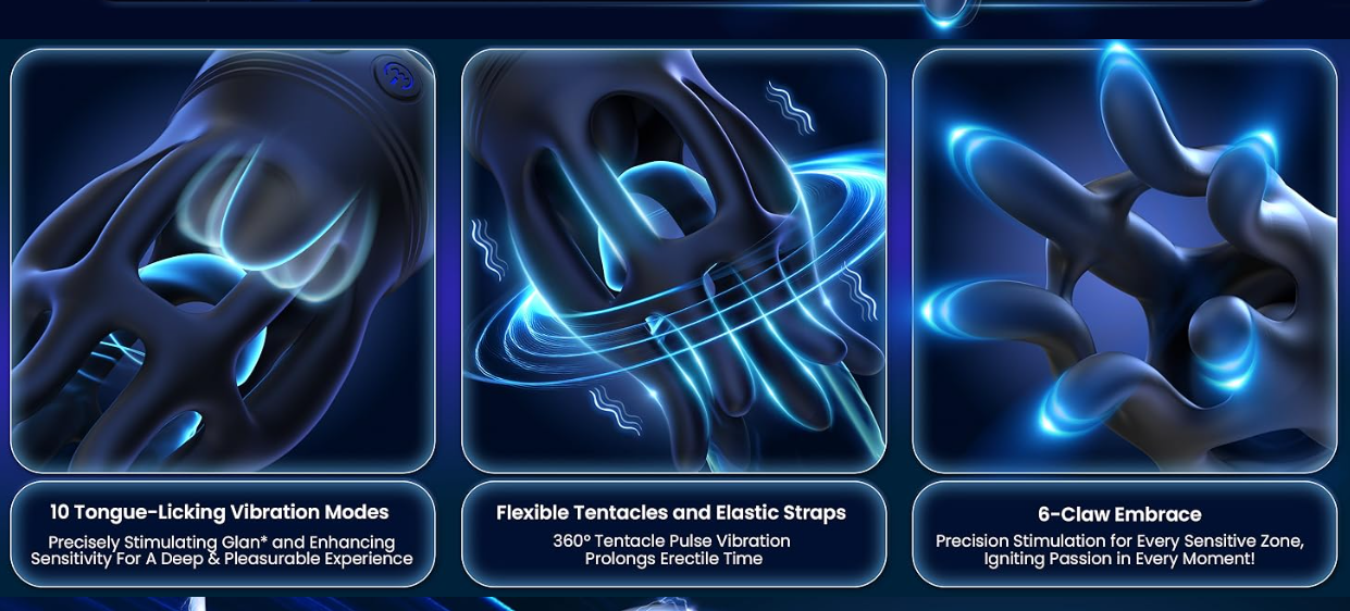 🐙 5-in-1 Octopus Sex Toy – The ultimate penis trainer, featuring an added licking function, specially designed for penis training to enhance sexual performance and promote sexual pleasure. Makes you bigger, harder, and longer-lasting! Let the octopus help you return to your peak and become the protagonist of your sex life! 8 tentacles plus a tongue will bring you a unique experience.